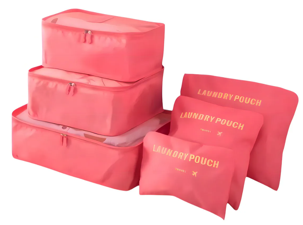 Si te gusta viajar con todo en su lugar, este set de 6 organizadores es perfecto para vos. Permite separar ropa, accesorios, calzado y artículos personales de manera práctica, manteniendo tu valija ordenada durante todo el viaje.